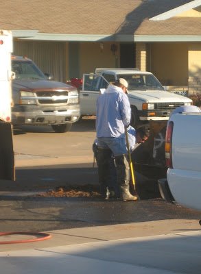During the repair, five other neighbors came by to see what was happening. I bet the workers just love the over-55 communities!