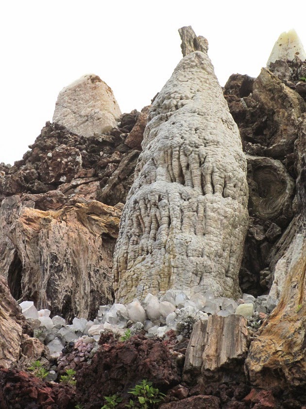 He also combined melted glass and crayons to create these interesting 'rocks', surrounding some of the hundreds of agates in the Grotto.